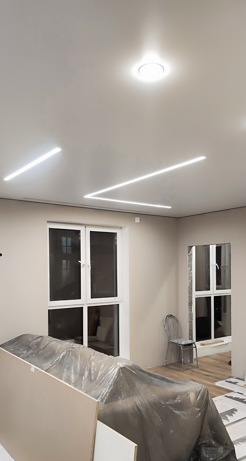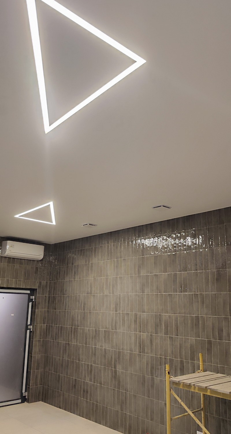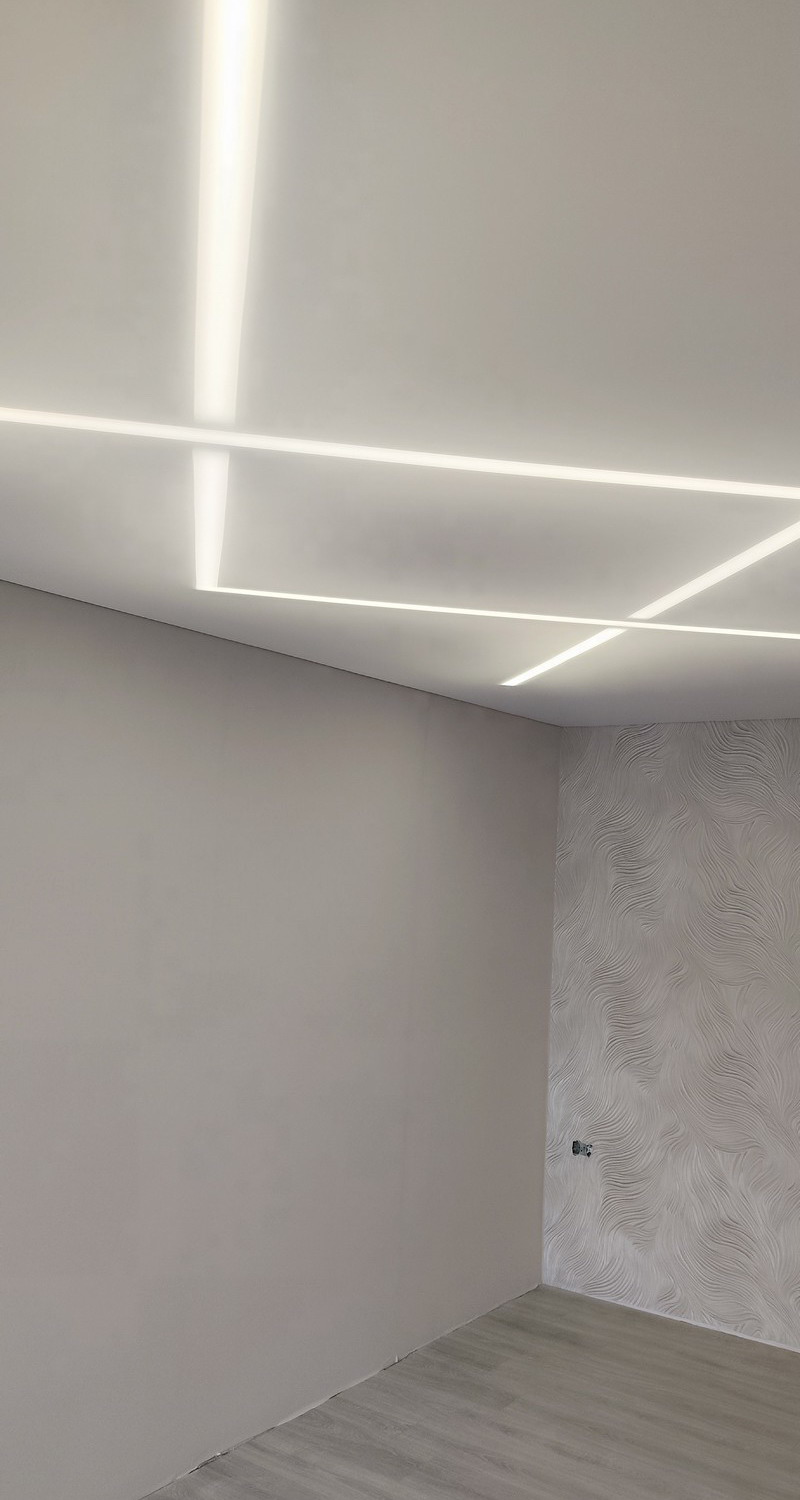 Теневые потолки с профилем создают стильный теневой кант шириной 6 мм по всему периметру помещения. Прочная металлическая конструкция обеспечивает идеально равномерную натяжку без необходимости маскировки стыков вставками. Это современный способ отделки, который преображает любое помещение.